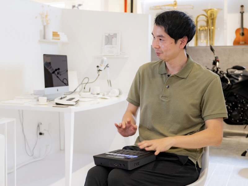 The all-in-one concept is also important for people who have already started finger drumming. Users should be able to set it on their lap and start playing right away—playing drums anywhere, anytime, without the need to set up a drum kit. We wanted people to be able to use the FGDP as a drum kit outdoors, in places like a park, not just in a studio or live performance venue. You can use it in a simple session anywhere—pull out the FGDP, and you’re ready to join in the music.