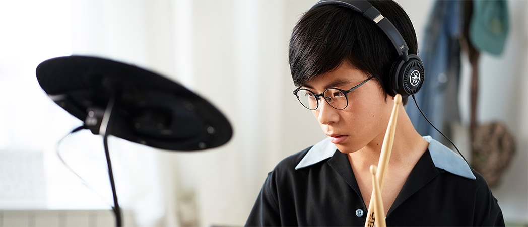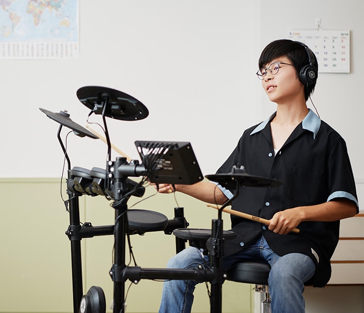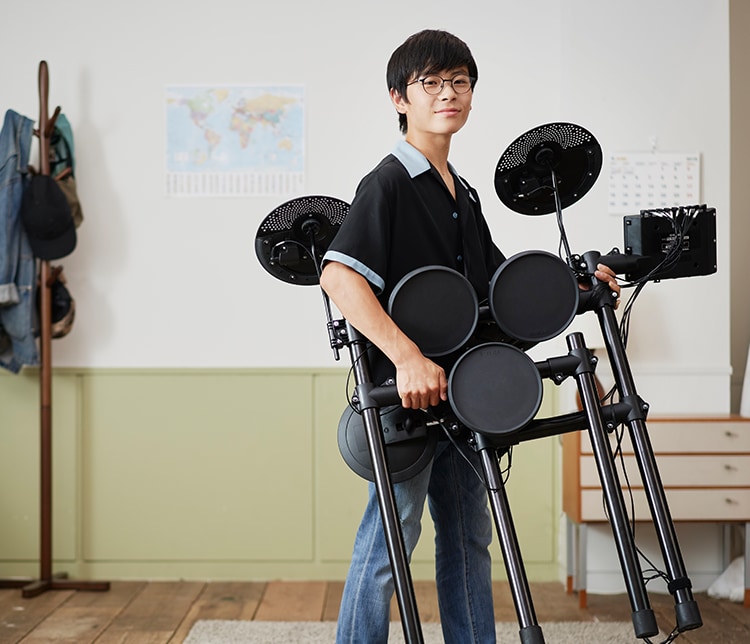 Yamaha knows everything there is to know about drums. That’s how we were able to produce a compact design without compromising the essence of the drum. You can adjust the position and angles of the cymbals, snare, and tom as you wish, and perform in the correct posture. The DTX is equipped with the Yamaha foot pedal, a favorite among professional drummers, and faithfully recreates the sound variations of a drum, including the cymbal choke and rim shot. The heights of the various components can also be modified for easy use by anyone, even small children.