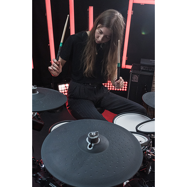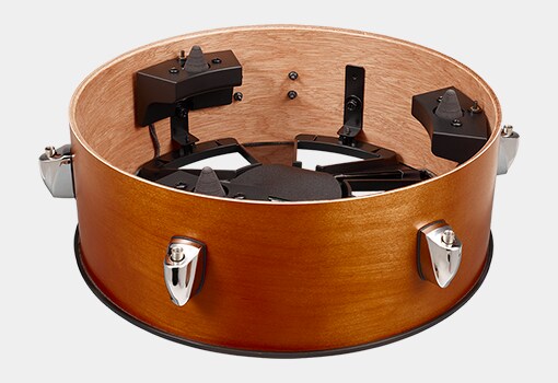 I mesh pad utilizzano pelli a due strati prodotte da Remo. Quando vengono colpite, vantano un'eccezionale riduzione del suono, durevolezza e sensazione, oltre che un ottimo rimbalzo, cosa che le rende comode da suonare. Le pelli possono essere accordate per adattarsi alle tue preferenze personali. Il pad rullante è dotato di tre sensori che rispondono in modo preciso a un tocco delicato della bacchetta.