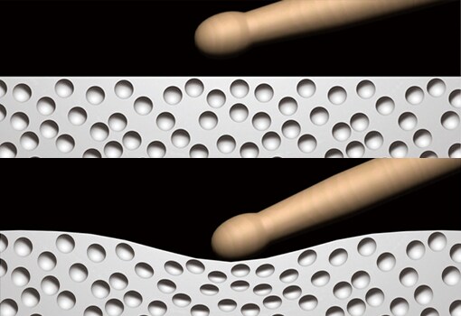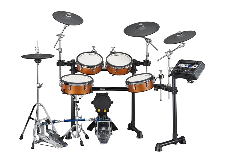 Le pelli Yamaha TCS (Textured Cellular Silicone) presentano una singolare struttura interna che offre una risposta realistica per durezza e rimbalzo, oltre a una superficie trattata che impedisce alla bacchetta di scivolare. Il risultato è una sensazione naturale che ti incoraggia a continuare a suonare.