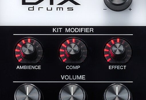 I KIT MODIFIER condensano il know-how della creazione del suono che Yamaha ha accumulato nel corso dei decenni in tre manopole: AMBIENCE, COMPRESSION ed EFFECT. Un'ampia gamma di possibilità timbriche sono disponibili grazie ai tecnici Yamaha: dal suono naturale della batteria acustica al suono della performance dal vivo, fino a suoni molto pesanti.