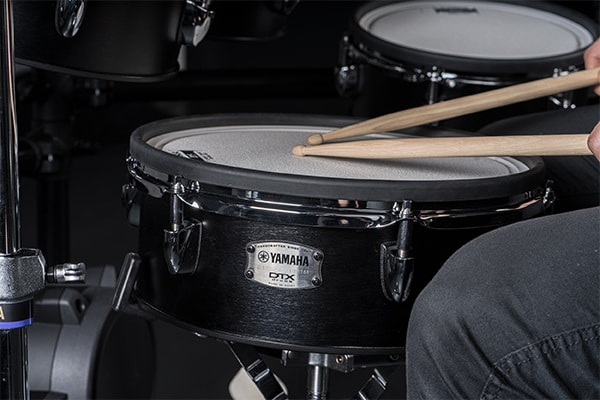 Le pelli Yamaha TCS (Textured Cellular Silicone) presentano una singolare struttura interna che offre una risposta realistica per durezza e rimbalzo, oltre a una superficie trattata che impedisce alla bacchetta di scivolare. Il risultato è una sensazione naturale che ti incoraggia a continuare a suonare.