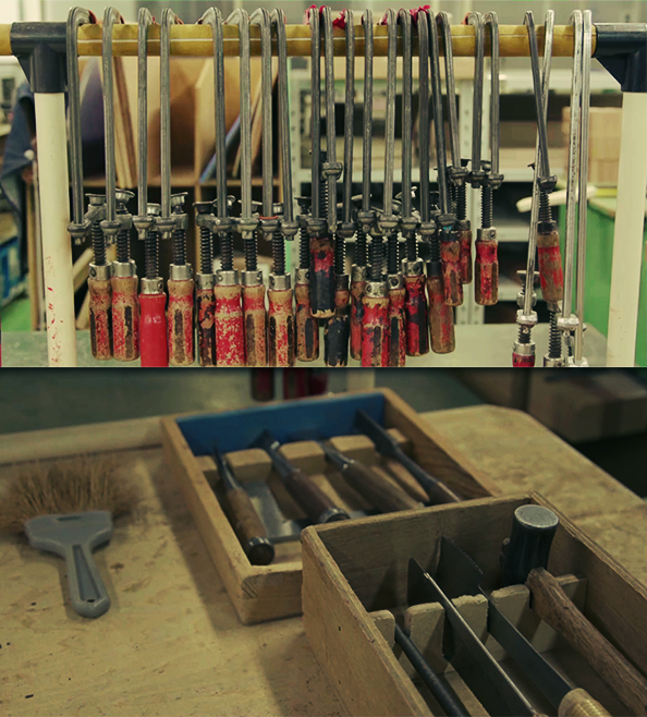 Most of the tools used for making guitars have to be made by hand for the purpose, and many are created specifically for a single model and won’t be used for anything else. Developing tools and jigs that make it easy for guitar builders to consistently produce perfect instruments is an important element of Yamaha’s approach to craftsmanship, but tools and jigs can wear and go out of alignment with use, so special care is taken to keep them maintained and in perfect working condition at all times: it’s a hidden but vital part of overall quality control.