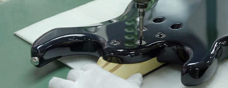 Yamaha works hard to ensure that every guitar and bass leaves the factory in optimum playing condition. Some players may want to make minor adjustments to match their individual playing style, but important details such as fret levelling and finishing are taken to custom-shop level right at the factory. Final assembly is a production step that requires the utmost care if optimum tone and performance are to be achieved. Parts that are not properly aligned or not solidly attached can degrade both sound and playability, so assembly workstations and processes are designed and set up for smooth, efficient assembly so the builder can concentrate fully on achieving perfect results.