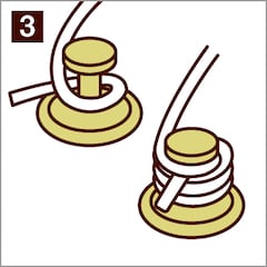 3. Strings should be wound around the pegs two to three times. The first wind should be done above the inserted string, while the second wind on should be done below the string, so that the inserted string is "pinched" on either side. This will allow you to wind the string tightly without any slack.