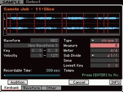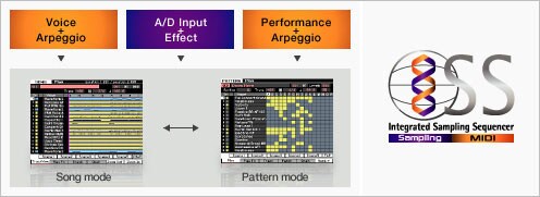 E’ possibile collegare un microfono all’input A/D e campionare le voci. Inoltre, se si seleziona la funzione slice durante il campionamento, l’audio registrato segue il ritmo in perfetta sincronizzazione anche se si modifica il tempo dei brani e dei pattern. I propri campioni possono essere campionati in pochi minuti per ottenere il suono che si desidera utilizzando l’editing UI.