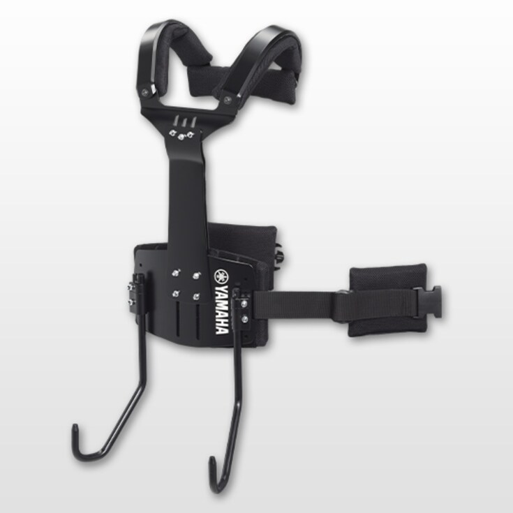 In addition to being supported on the player’s shoulders, a waist belt that adds extra support and stability is provided. The instrument is stably held to ensure consistent playability even through dynamic marching and dance moves. The belt and pads significantly reduce stress on the user’s body, reducing fatigue during long practice sessions and performances. A central quick-action buckle makes attachment and detachment easy, and hook-and-loop fasteners are provided to secure excess belt material during use.