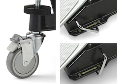 Le ruote principali hanno un meccanismo di blocco one-touch che contribuisce a una rapida e sicura sistemazione. Oltre a questo meccanismo, è stato aggiunto un freno ausiliario alle ruote dei pedali. Il musicista può inserire il freno ausiliario per bloccare saldamente la ruota ed impedire il movimento dello strumento.