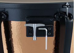 La molla del pedale e la tensione della pelle sono bilanciate in modo che l’intonazione rimanga regolata sia che l’esecutore tenga o tolga il piede dal pedale. I cambi d’intonazione in tutta la gamma sono facili e morbidi. È stata ottenuta una capacità di modulazione pari ad una sesta minore per pollice.