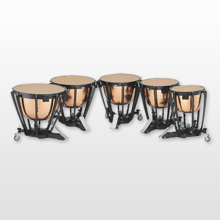 Questa serie di timpani top di gamma è caratterizzata da caldaie in rame martellato approfondite e dal sistema con molla per il bilanciamento del pedale. Le caldaie approfondite offrono un ampio volume, nonché una risonanza e un decadimento ottimali. La linea include modelli da 24 pollici e 27 pollici per un’esecuzione più lineare anche di quei brani che richiedono gruppi multipli di timpani.