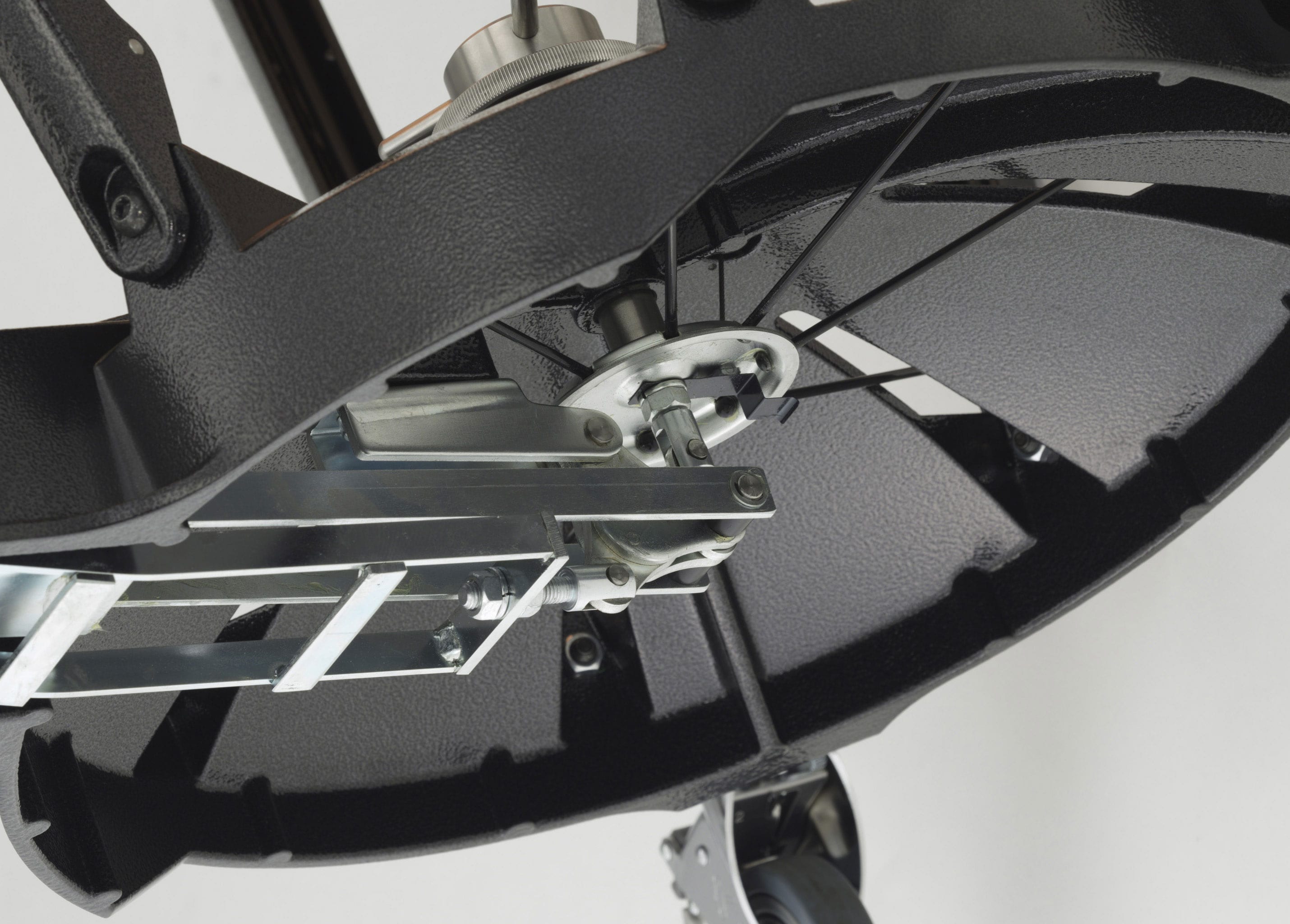 A sinistra: blocco della ruota principale, a destra: freno ausiliario della ruota del pedale