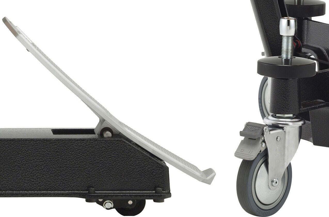 L'altezza di tutte le ruote può essere regolata su una scala di 25 mm., permettendo regolazioni precise dell'altezza dello strumento e dell'angolo della pelle. Gli strumenti possono essere posizionati così in modo ideale per suonare sia in piedi che da seduti, su qualsiasi palco. La regolazione viene effettuata usando la chiave di accordatura in dotazione o una chiave a brugola appropriata e può essere facilmente effettuata da una sola persona.
