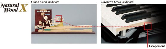Le tastiere NWX inoltre sono dotate di un meccanismo di scappamento che riproduce che riproduce una lieve sensazione di click vicino al fondo del tasto e sono state realizzate in modo che il click sia avvertibile solo con i tocchi più leggeri, proprio come un pianoforte a coda.
