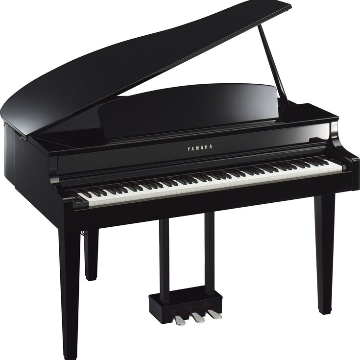 Apprezza l’aspetto elegante della struttura di un pianoforte a coda con una finitura lucida, così come il tocco e il suono di un pianoforte a coda