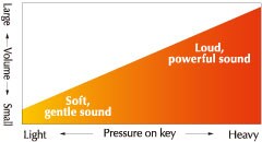 A pianist changes the volume and dynamics of the sound by varying the pressure applied to the keys. A Clavinova responds perfectly to give the player an outstanding level of performance control. By using long, carefully-sampled recordings of notes on a piano and unique Yamaha technologies to achieve smooth tonal transitions, rich sonic detail is delivered in response to the touch of the player.