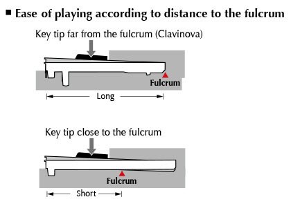 I contrappesi sono incorporati nei tasti di un pianoforte a coda per bilanciare il peso dei martelletti e per offrire un controllo più preciso quando si suona delicatamente a bassi volumi. Il Clavinova è dotato di contrappesi finemente regolati per una maggiore facilità di esecuzione nel pianissimo, con un tocco leggero, e per un migliore ritorno del tasto nei passaggi rapidi. La tastiera del Clavinova è stata finemente regolata per offrire il bilanciamento ottimale, per enfatizzare le prestazioni e la perfetta risposta del pianoforte a coda.