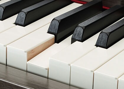 Le nostre dita sono più sensibili di quanto pensiamo e per i pianisti il materiale con cui sono costruiti i tasti è estremamente importante. La tastiera GrandTouch presenta i tasti bianchi in avorio sintetico della miglior qualità, sviluppata in proprio da Yamaha. I tasti neri sono rifiniti in ebano sintetico. La copertura dei tasti in avorio sintetico riproduce la superficie tattile di una vera tastiera in avorio, usata un tempo per i pianoforti acustici. Il materiale utilizzato è altamente assorbente e previene lo scivolamento delle dita anche dopo ore di pratica, mentre mantiene la giusta struttura e sensazione. Risultato di oltre un secolo di esperienza nella costruzione di pianoforti acustici, questa esclusiva tecnologia Yamaha raggiunge una finitura che risulta naturale e confortevole. Oltre alla sensazione, l'aspetto e la struttura di questi tasti sono ineguagliabili per qualsiasi altro pianoforte digitale e ispireranno sicuramente ogni pianista che li proverà.