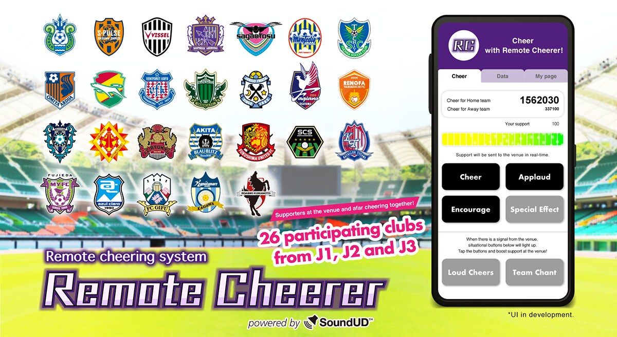 Yamaha Corporation has started offering its currently in-development remote cheering system 'Remote Cheerer powered by SoundUD' from June 27 to enable remote cheering for 26 football clubs at selected MEIJI YASUDA J1 LEAGUE matches, MEIJI YASUDA J2 LEAGUE matches, and MEIJI YASUDA J3 LEAGUE matches, which aims to become a new way of spectating sports in an age of remote support for matches.