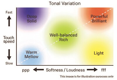 Grand pianos offer seemingly unlimited tonal variation resulting from the inner workings of the piano, such as the way the hammers strike and the dampers contact the strings in response to the player's touch. Reproduction of this rich tonal variation is made possible by Yamaha's Grand Expression Modeling technology. This technology provides the player with the ability to explore subtle tonal nuances, faithfully reproducing every piano sound exactly the way the player intended. Grand Expression Modeling detects both the force and acceleration of the keystrokes and changes the audio output accordingly in real time, making it possible to enjoy an authentic performance experience using a variety of playing styles.