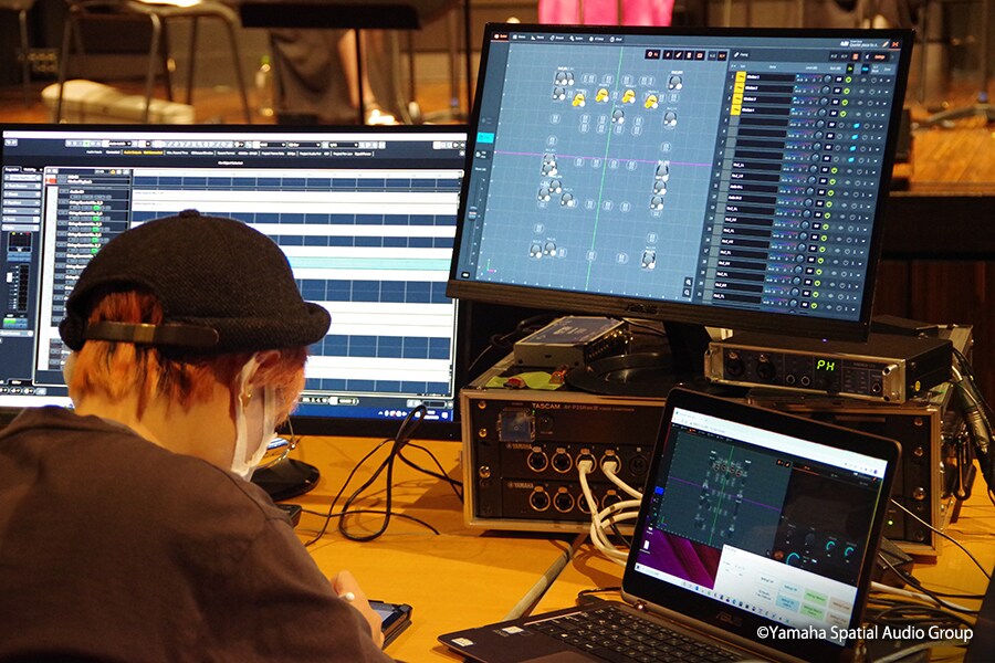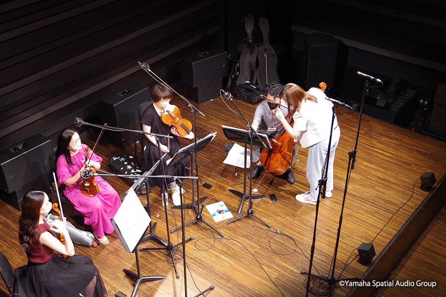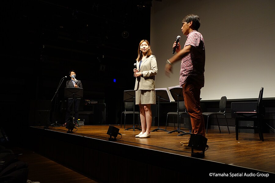 It was performed for the first time at the Yamaha Ginza Studio in Tokyo, Japan, in front of more than a hundred guests from various fields, including venue designers, sound designers, operators, composers and researchers.