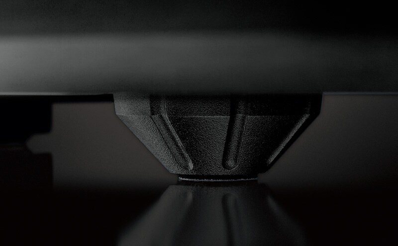 Tecnologia Anti Risonanza (A.R.T.) Un quinto piedino a cuneo è posizionato al centro dell'unità. Smorza le vibrazioni dell'alimentazione, dei transistor di potenza e dei dissipatori, nonché quelle eventualmente provenienti dai diffusori - per una riproduzione del suono fedele, ricca di dinamica e precisione.