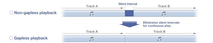 Molti album dal vivo e di musica classica sono privi di interruzioni musicali. La riproduzione gapless assicura l'assenza di pause tra le tracce. Viene così garantito un ascolto senza interruzioni, esattamente come in origine.