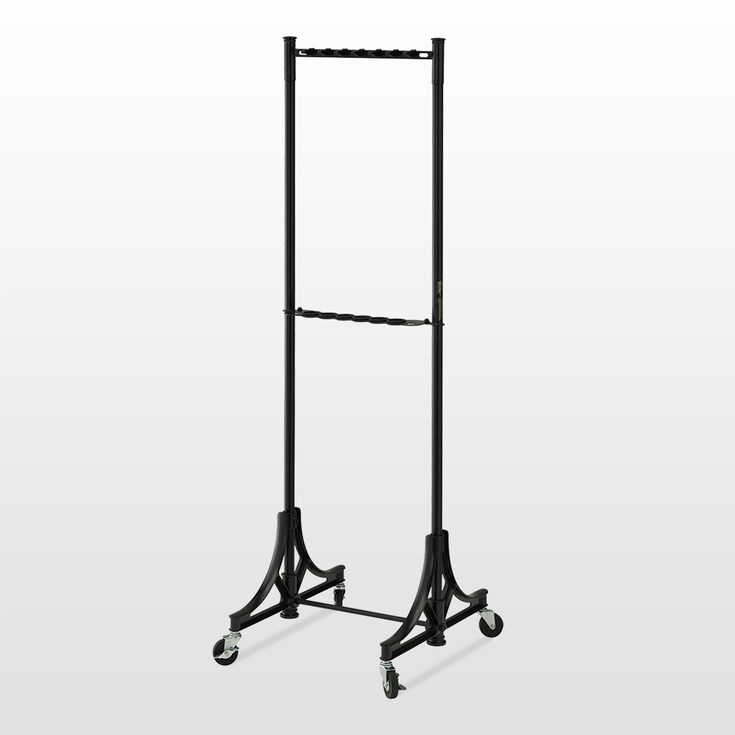 A six-tube stand that can be used to hang only the chime tubes needed for specific performances.