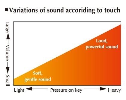 In un pianoforte acustico il suono si attenua dopo molto tempo. I pianisti possono controllare il volume del suono, così come le dinamiche, per ottenere sia suoni suadenti che brillanti semplicemente modificando la pressione delle dita sui tasti.