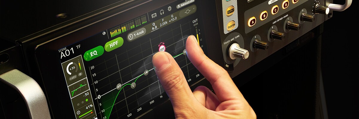 Perfezionato per operare il più facilmente possibile tramite i controlli touch-panel, l'interfaccia utente del TF1 offre un facile approccio che può essere un vantaggio in qualsiasi situazione di missaggio. Il contenuto del display è stato progettato specificamente per un'accessibilità facile e diretta, con un layout che supporta il mixing più naturale ed efficiente. L'operatività da touch panel è facile come disegnare il suono con le vostre dita.