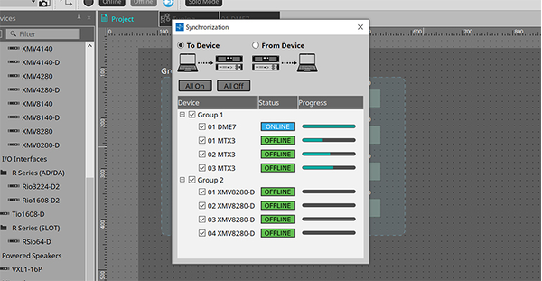 - Il routing audio per le configurazioni di controllo logico create offline, può essere controllato e testato senza la necessità di avere alcun dispositivo collegato.