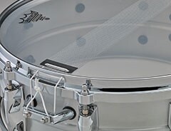 Dopo ripetute valutazioni del nostro design da parte di Steve Gadd, abbiamo creato un rullante innovativo. Fino ad oggi i rullanti Yamaha erano caratterizzati da center bead in metallo posizionato all’interno del rullante. Abbiamo preso la decisione di fissare il center bead all’esterno per produrre un suono più aperto rispetto alle nostre batterie tradizionali, per performance articolate più definite.